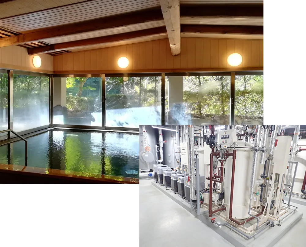 当社の中心事業は、ホテル・旅館・温泉施設などにおける温浴設備の設計・施工・メンテナンスです。